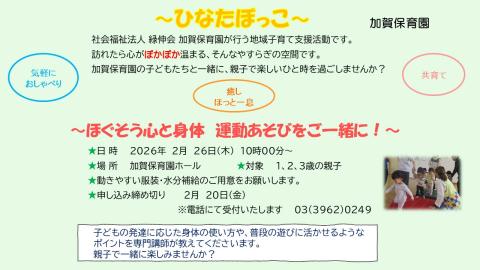 2月は“ほぐそう心と身体 運動あそびをご一緒に!”を開催します。