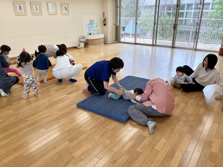 ・緊張気味でしたが時々笑顔を見せたり、お友だちの様子を気にしてよく見ていました。動物歩きなど家でもやってみようと思います。
