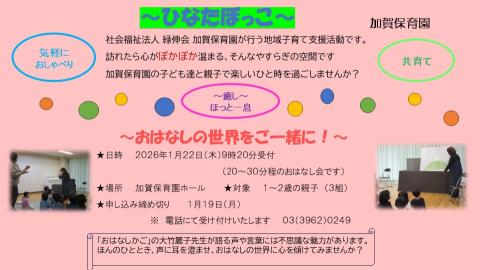 1月は“おはなしの世界をご一緒に!”を開催します。